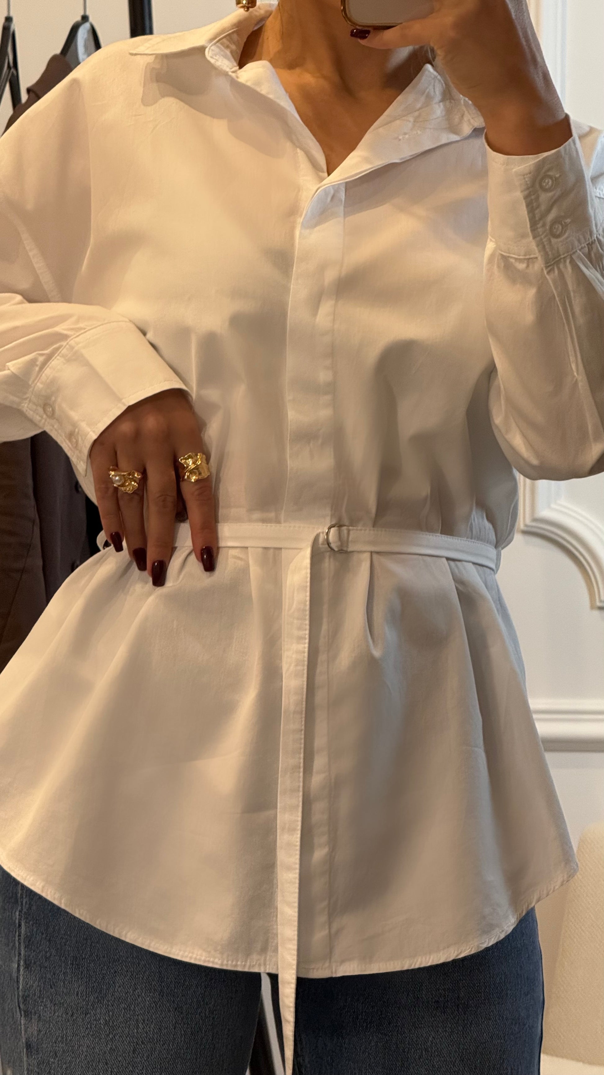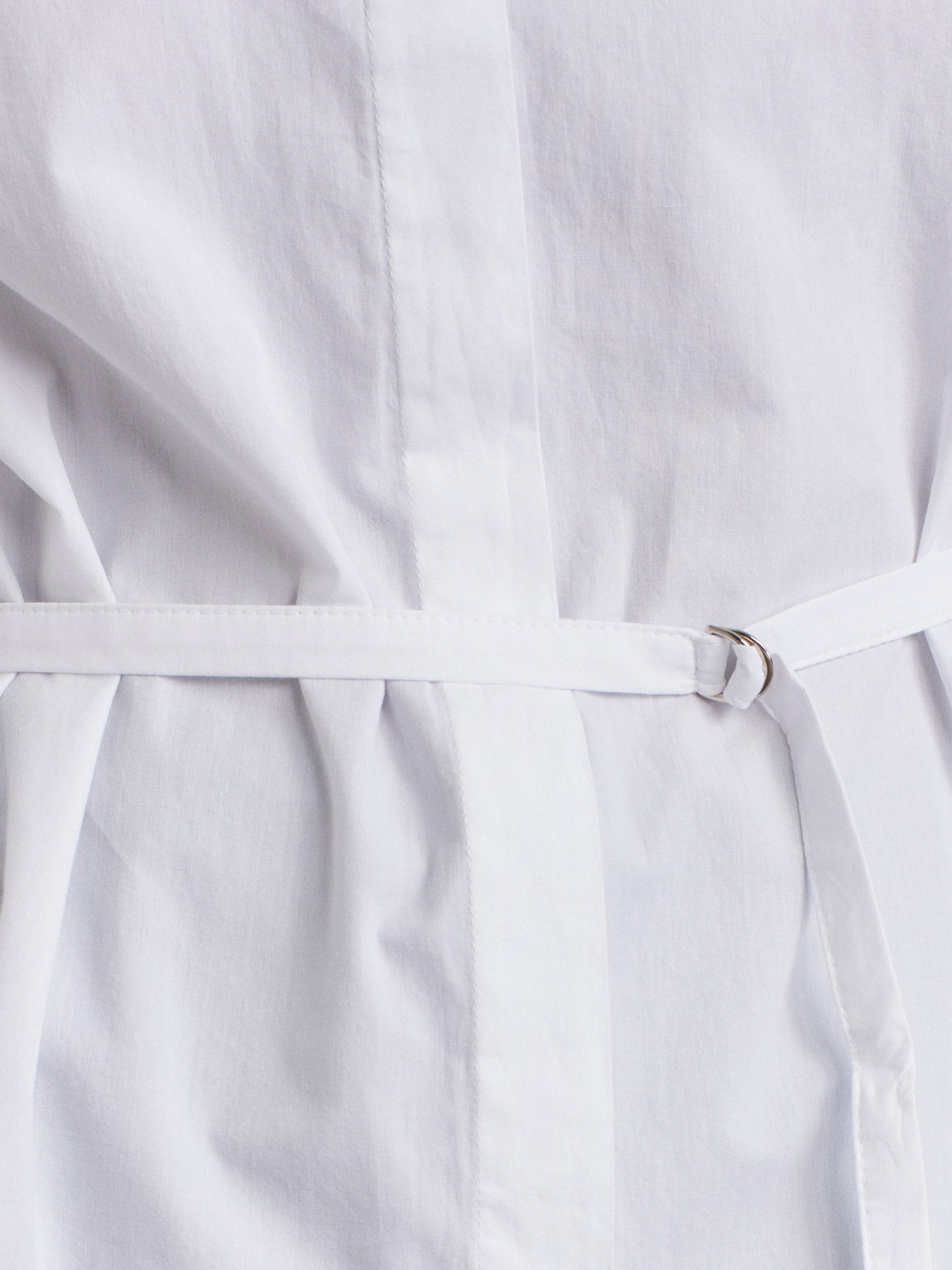 La chemise Iris en popeline blanche est une pièce essentielle de la collection Terre d’Élégance. Confectionnée en 100% coton, elle allie confort, style et raffinement. Sa coupe droite moderne est sublimée par une fine ceinture ton sur ton, qui permet de marquer subtilement la taille.